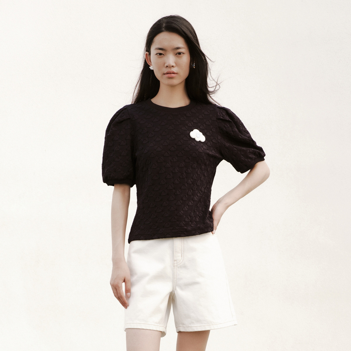 【提花针织】T恤女短袖甜酷提花泡泡袖可爱针织上衣 453569