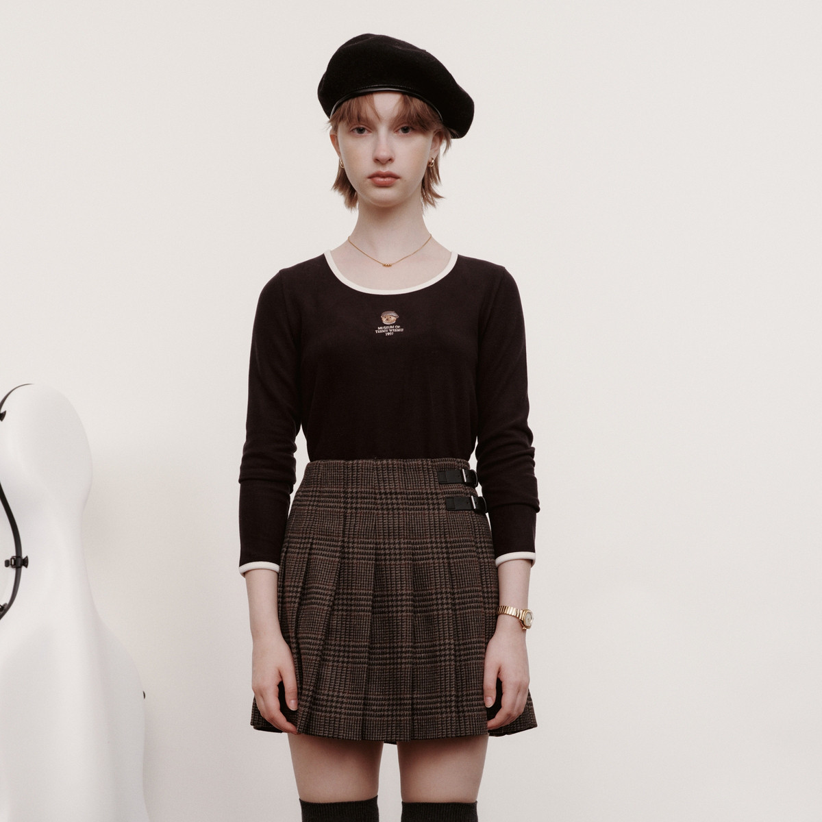 小熊女装春秋款长袖T恤多巴胺打底衫保暖T恤撞色上衣女士 690241