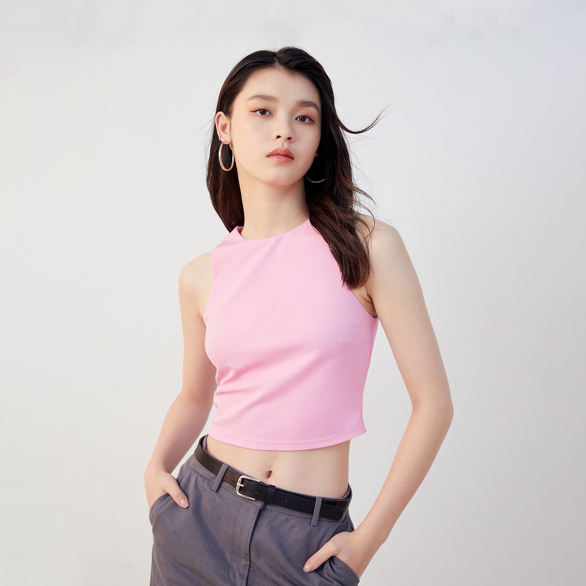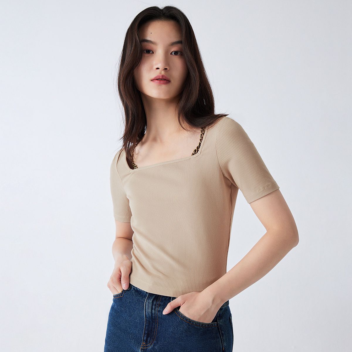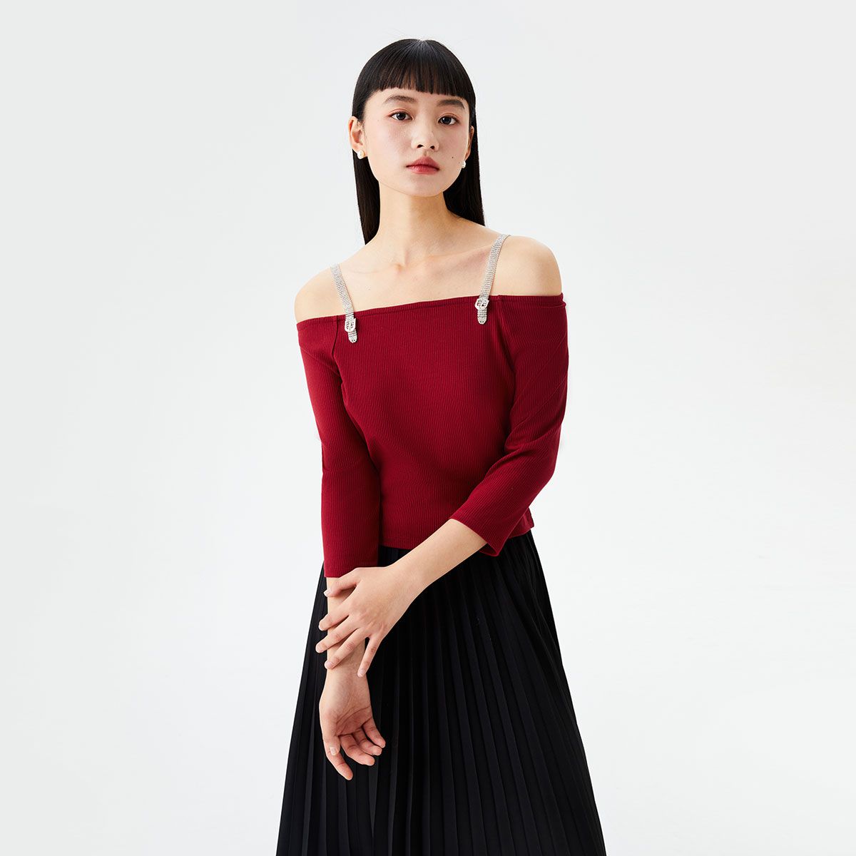 【专柜同款】春夏一字肩水钻吊带优雅T恤女气质百搭时尚 817233