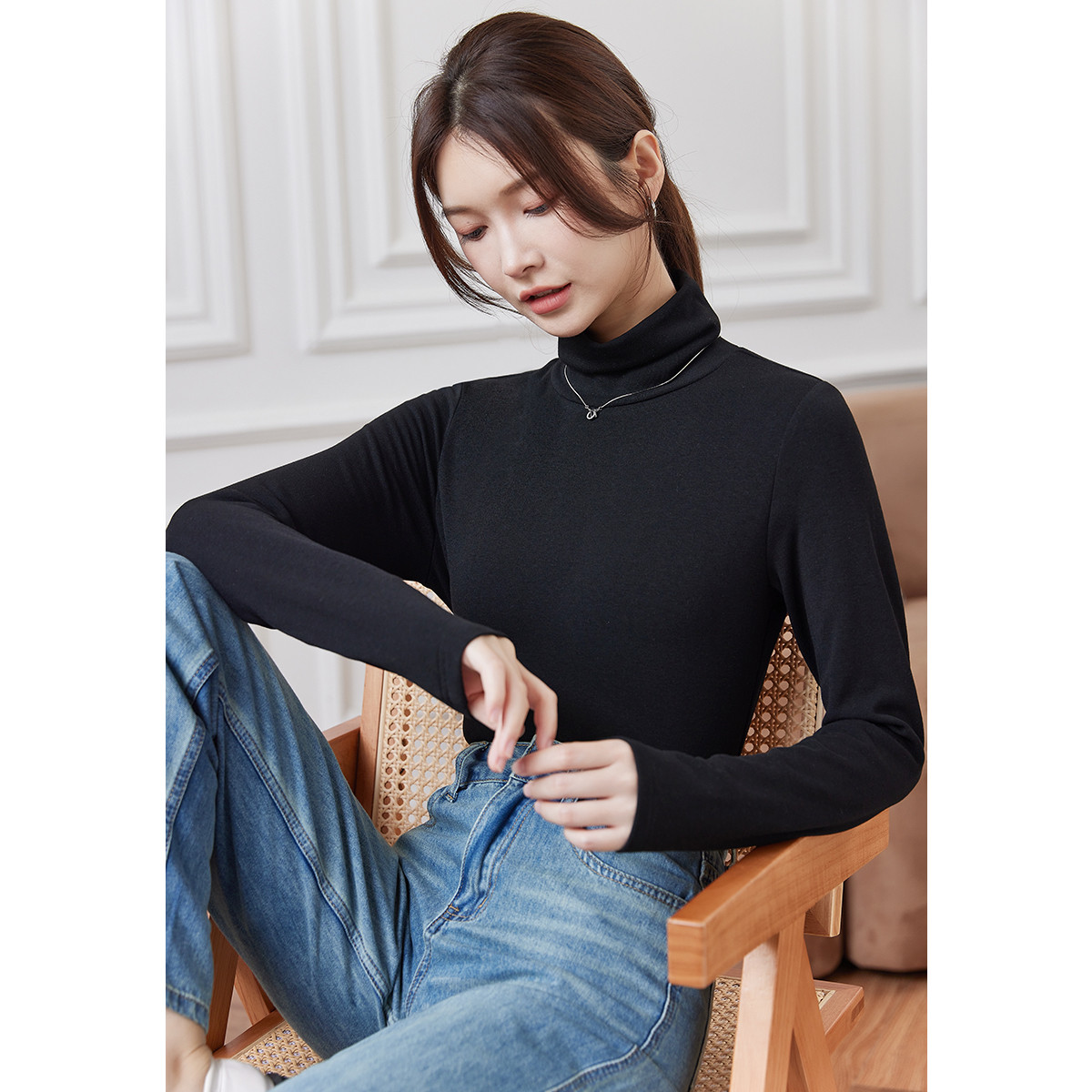 米子旗春秋款女T恤高领设计纯色百搭长袖上衣女 463962