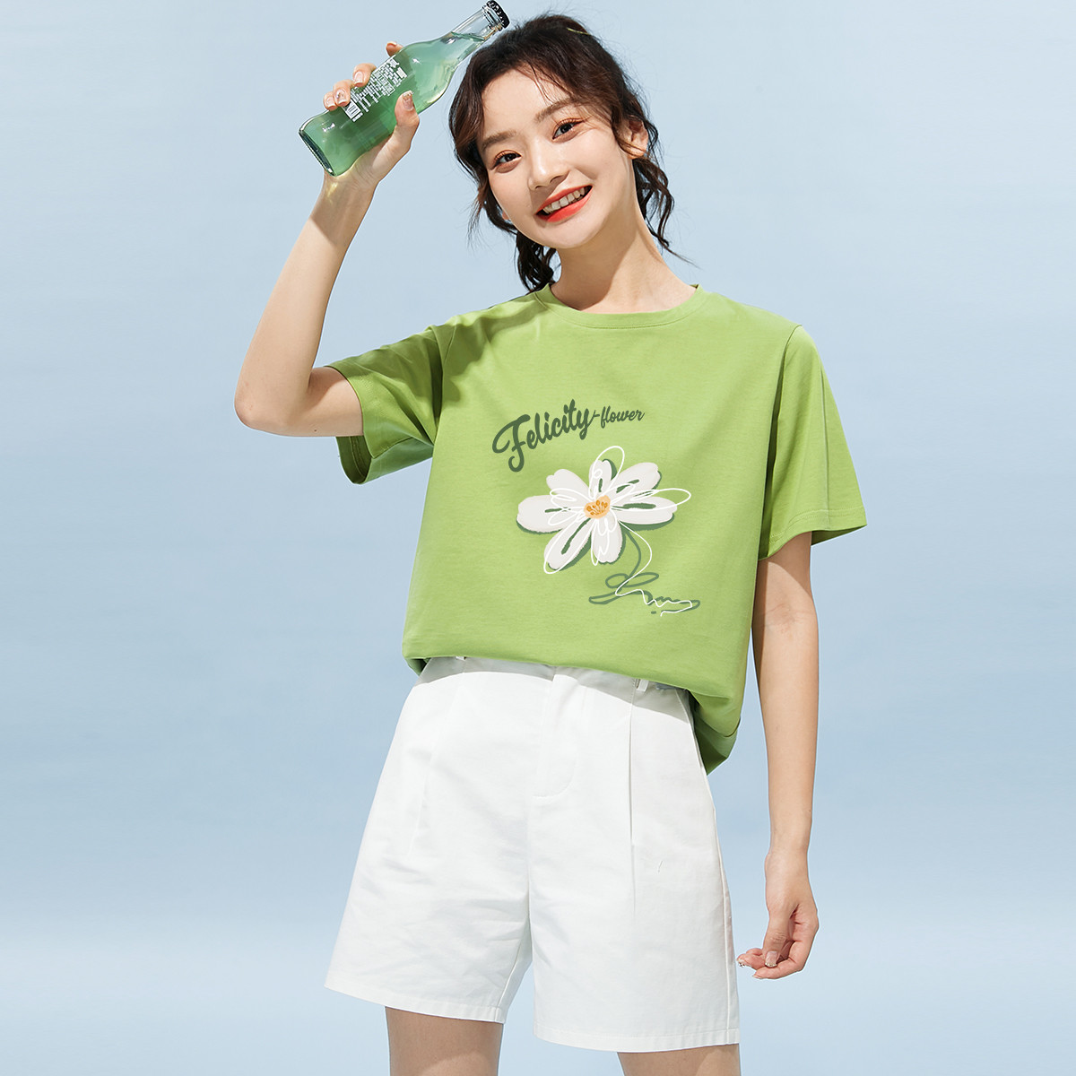 米子旗夏季圆领字母印花女式大码T恤宽松休闲慵懒风短袖上衣 516506