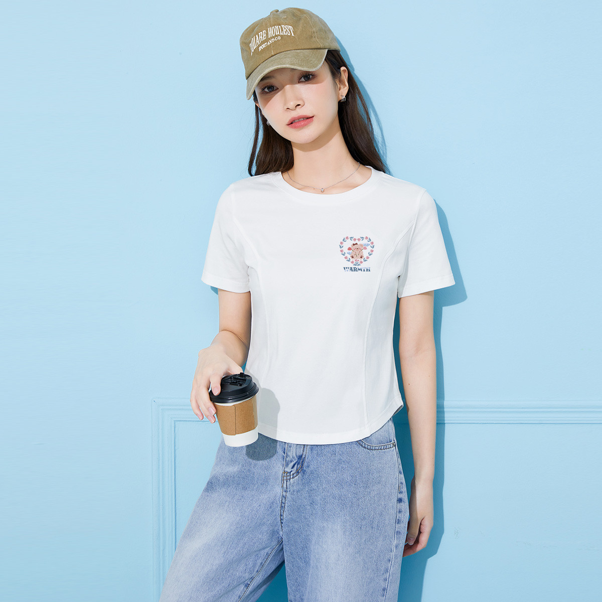米子旗夏季款圆领女式T恤卡通印花修身短袖上衣休闲 092314