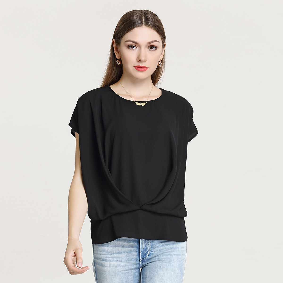 春夏女装宽松活褶T恤日常通勤百搭休闲上衣 083295