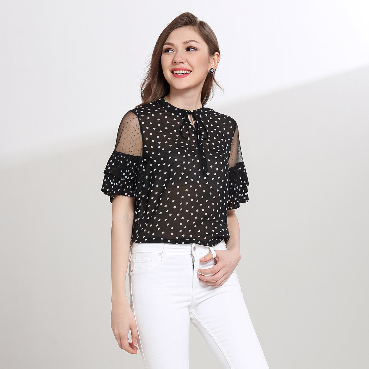 【复古甜美春夏款】蕾丝印花小清新七分袖雪纺衫女气质百搭时尚 029969