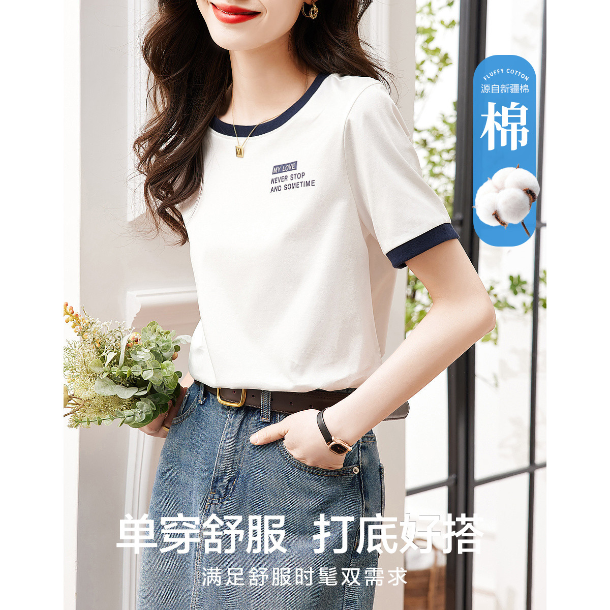 米子旗夏季款圆领女式T恤字母印花宽松短袖上衣休闲 288794