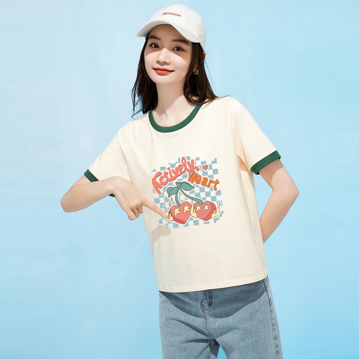 韩版百搭休闲女士T恤2025夏季轻薄薄款可爱减龄印花T恤女 252425