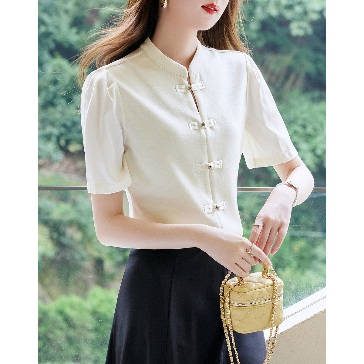 【国风女式t恤】夏季立领修身泡泡袖短袖t恤女 905729
