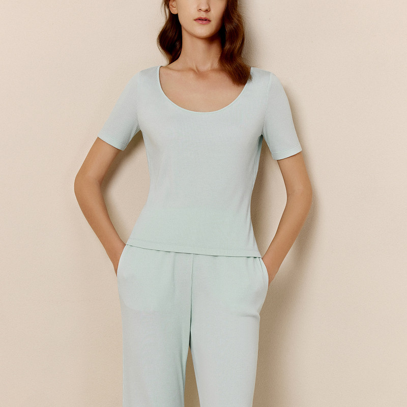 NEIWAI内外棉感罗纹短袖上衣蓬松透气修饰身形 846794