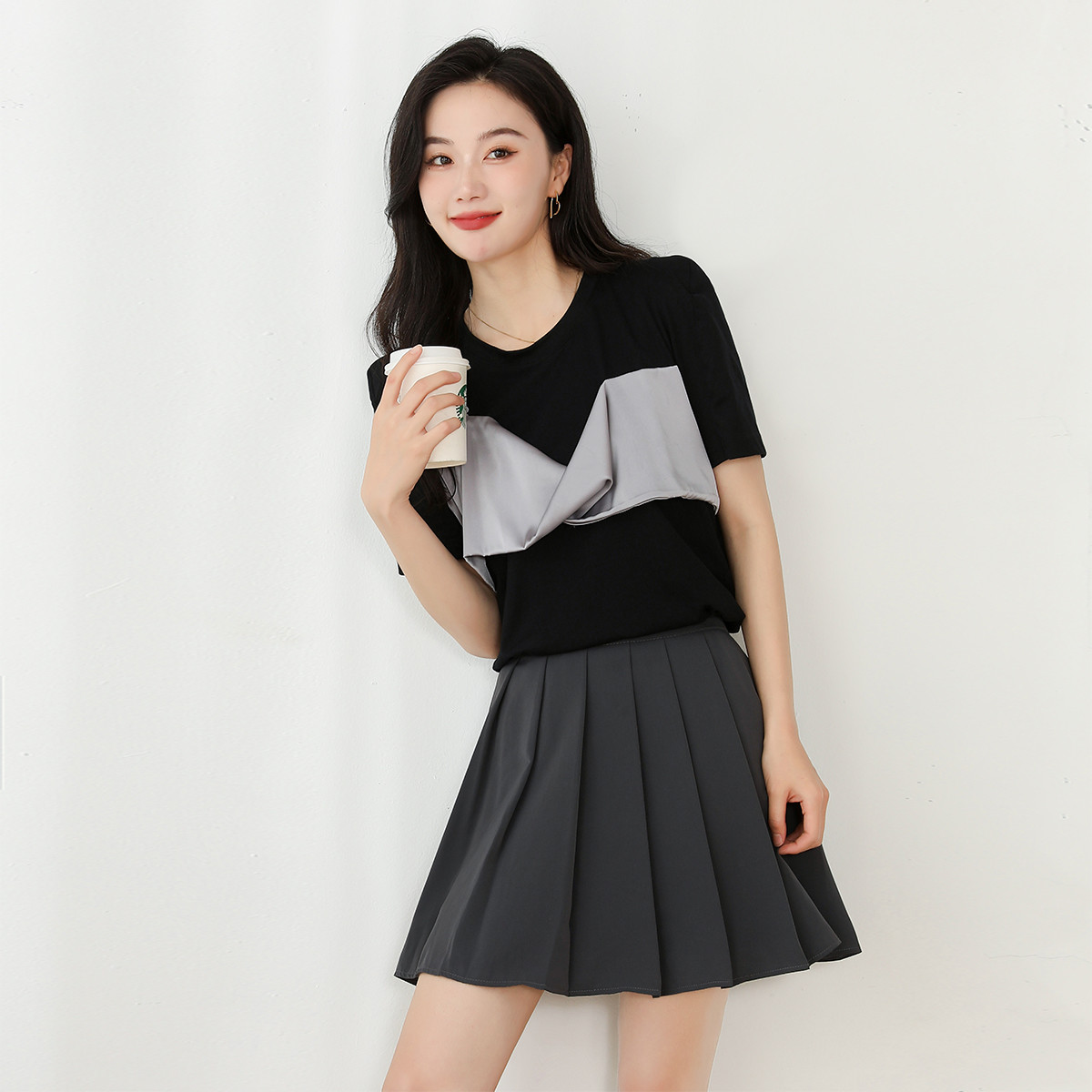 扭结假两件短袖T恤女潮港风夏季薄款不规则设计感小众上衣女 014168