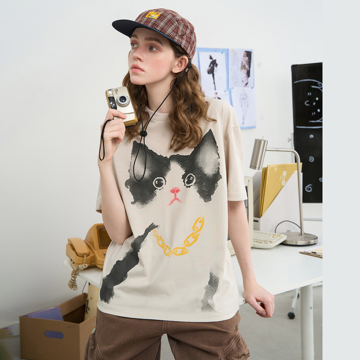 可爱水墨印花短袖上衣2025夏季宽松百搭女式T恤 551581