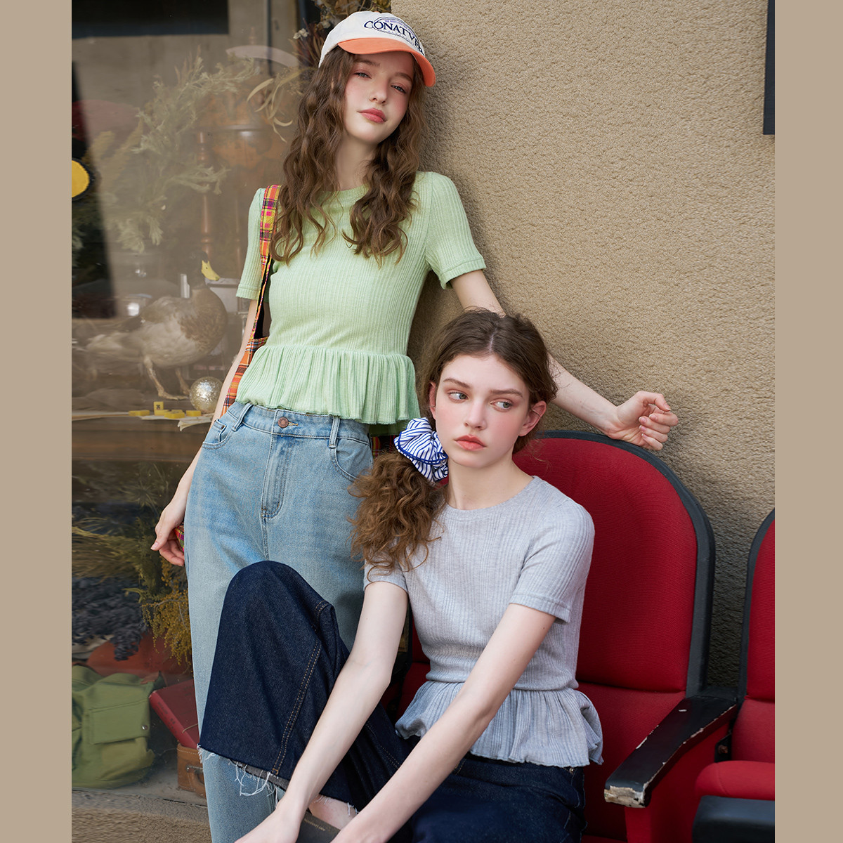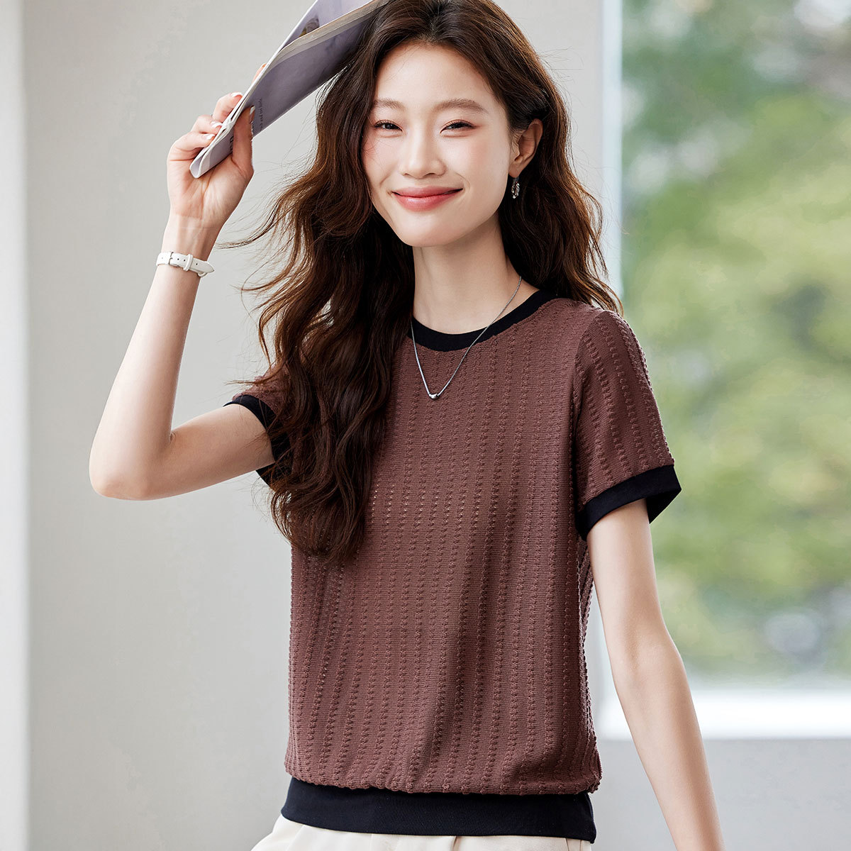 肌理感上衣女温柔气质减龄撞款显瘦t恤女2025夏款百搭短袖衫 794719