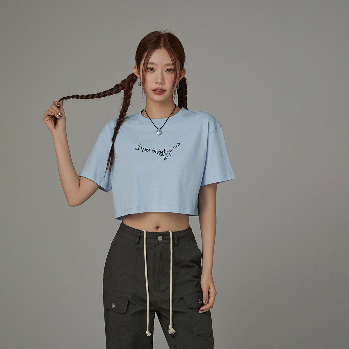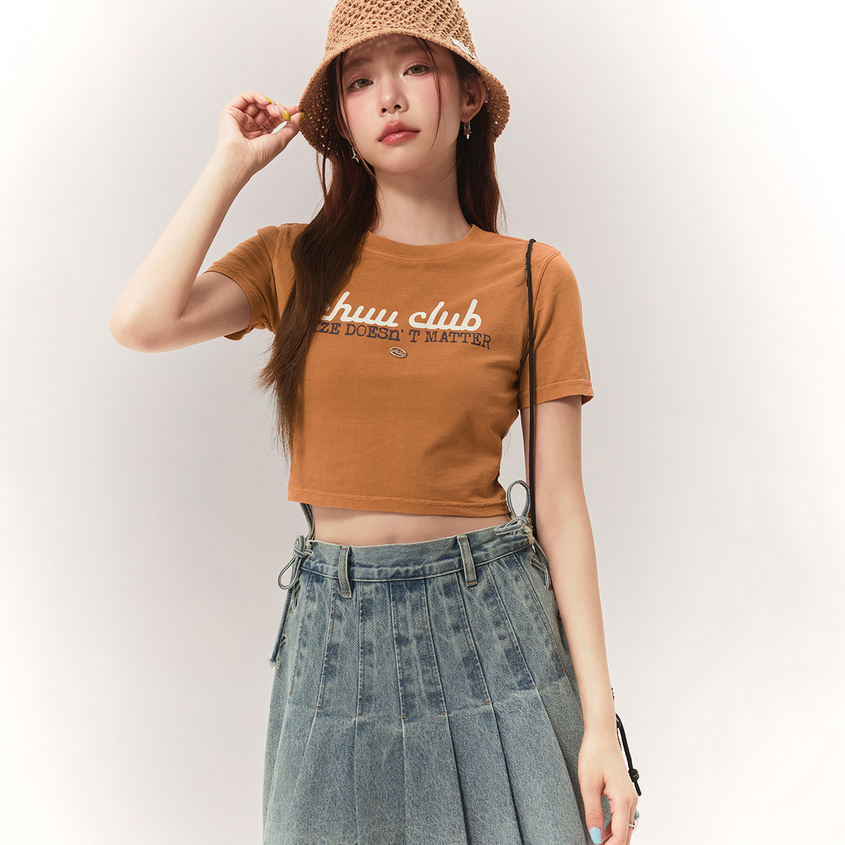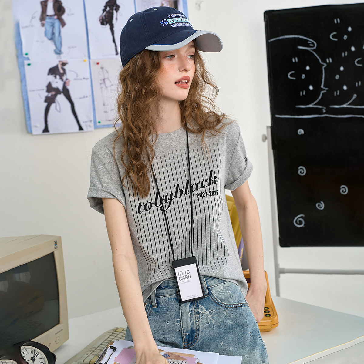 美式辣妹潮牌印花设计圆领简约上衣2025夏季百搭休闲女式T恤 602333