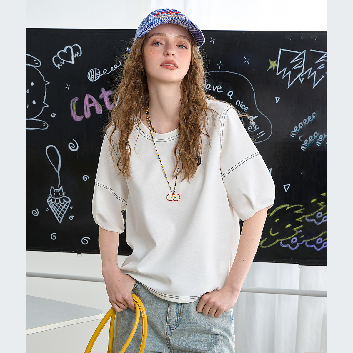 泡泡袖宽松显瘦气质短袖上衣2025夏季休闲百搭女式T恤 902557