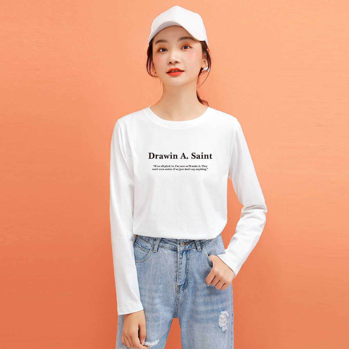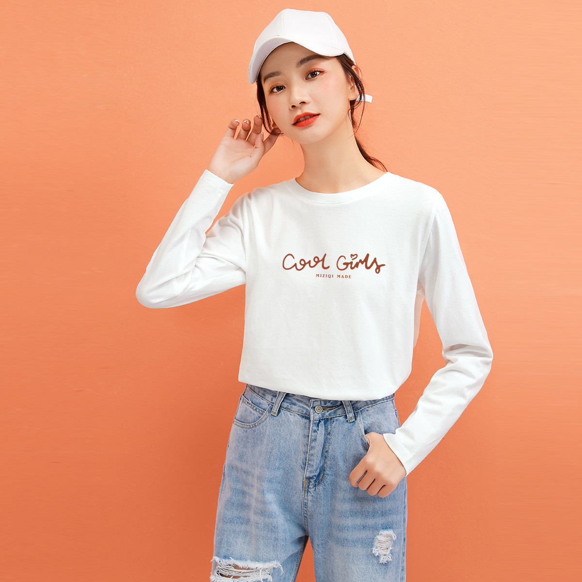 米子旗春秋季款长袖圆领女T恤ins潮流款印花休闲百搭 574170