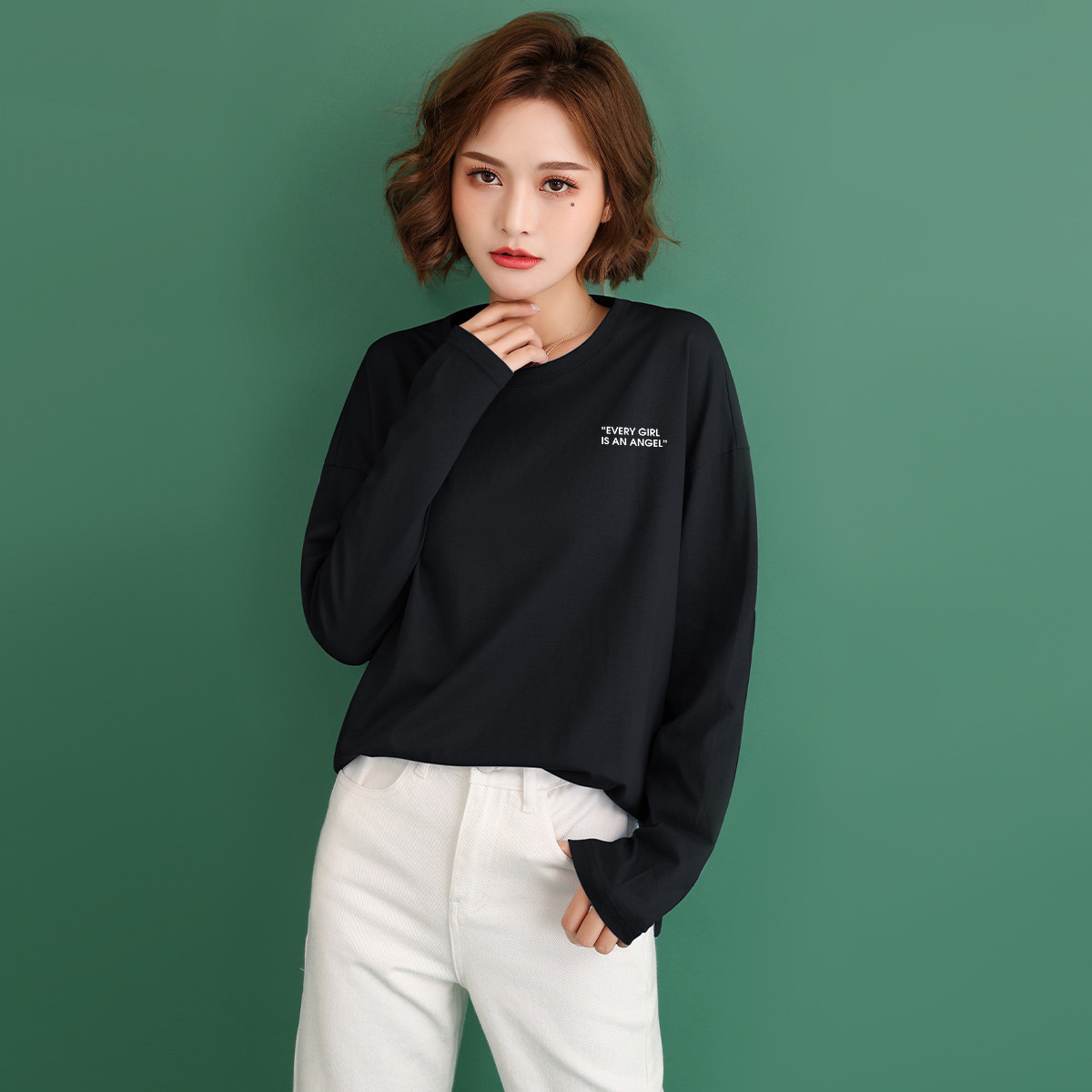 米子旗打底衫女纯色清新百搭小众风格女式长袖T恤 782874