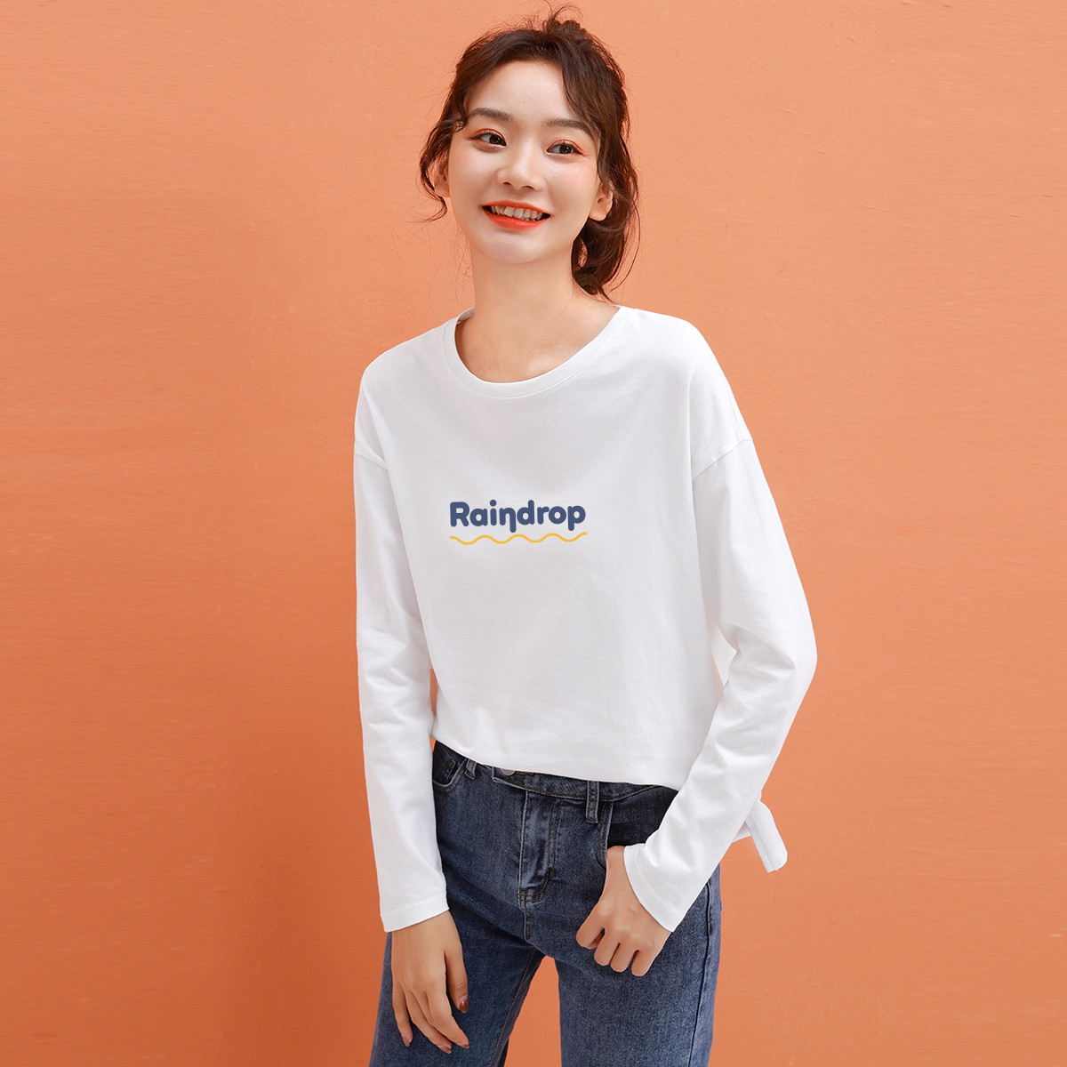 米子旗春秋季早春款圆领长袖t恤女装打底衫上衣女 927450