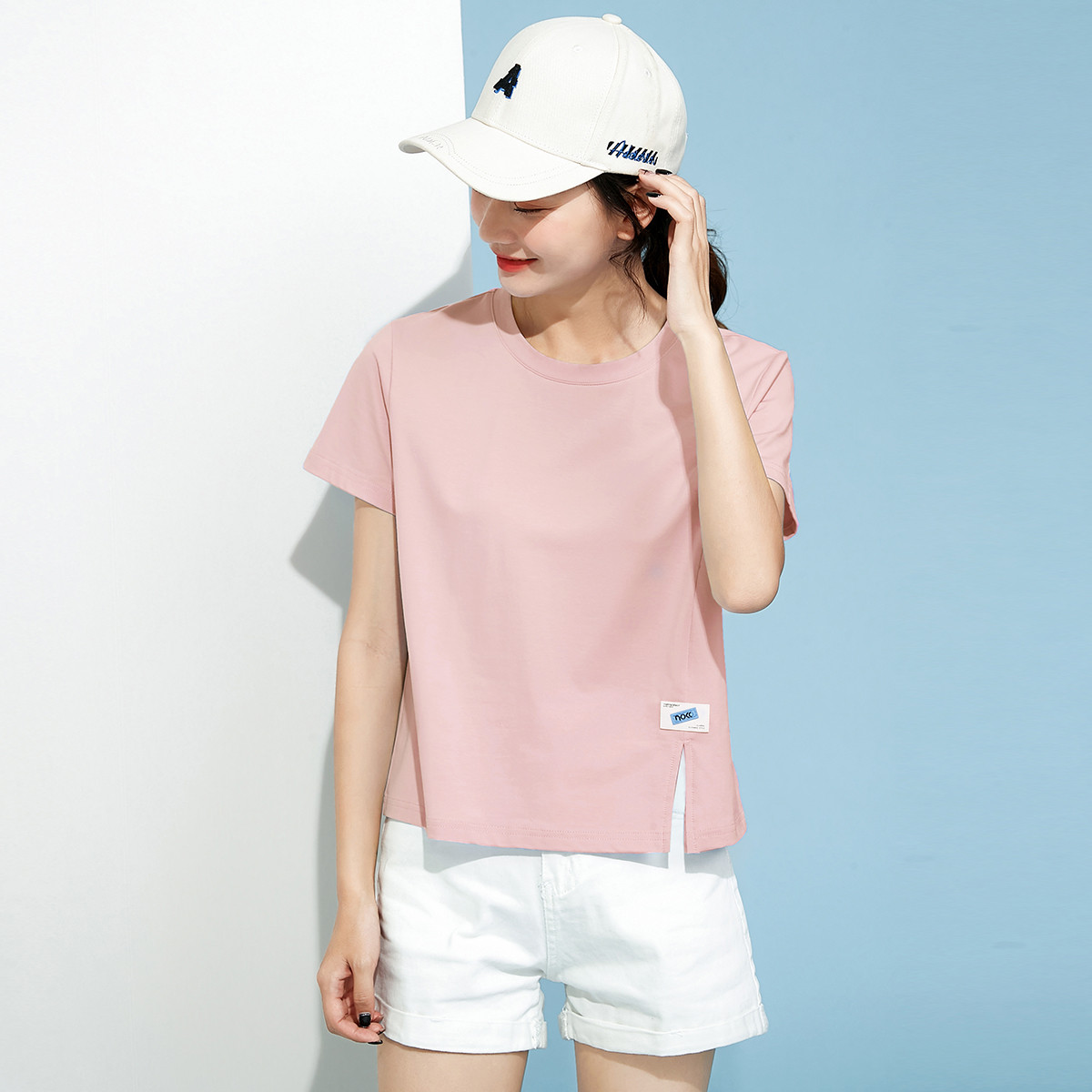 米子旗春秋圆领女式T恤纯色短款短袖上衣简约百搭 048410