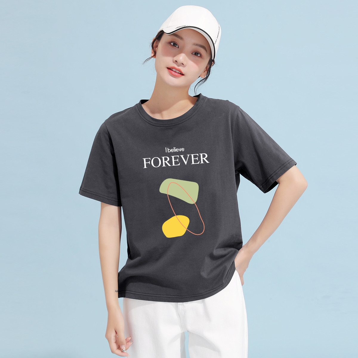 米子旗夏季字母印花T恤百搭圆领宽松短袖t恤遮肉显瘦高级感上衣 606490