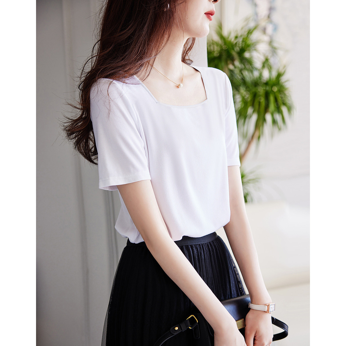 【美拉德淑女凤】春秋季方领女式t恤优雅简约气质t恤女 859457