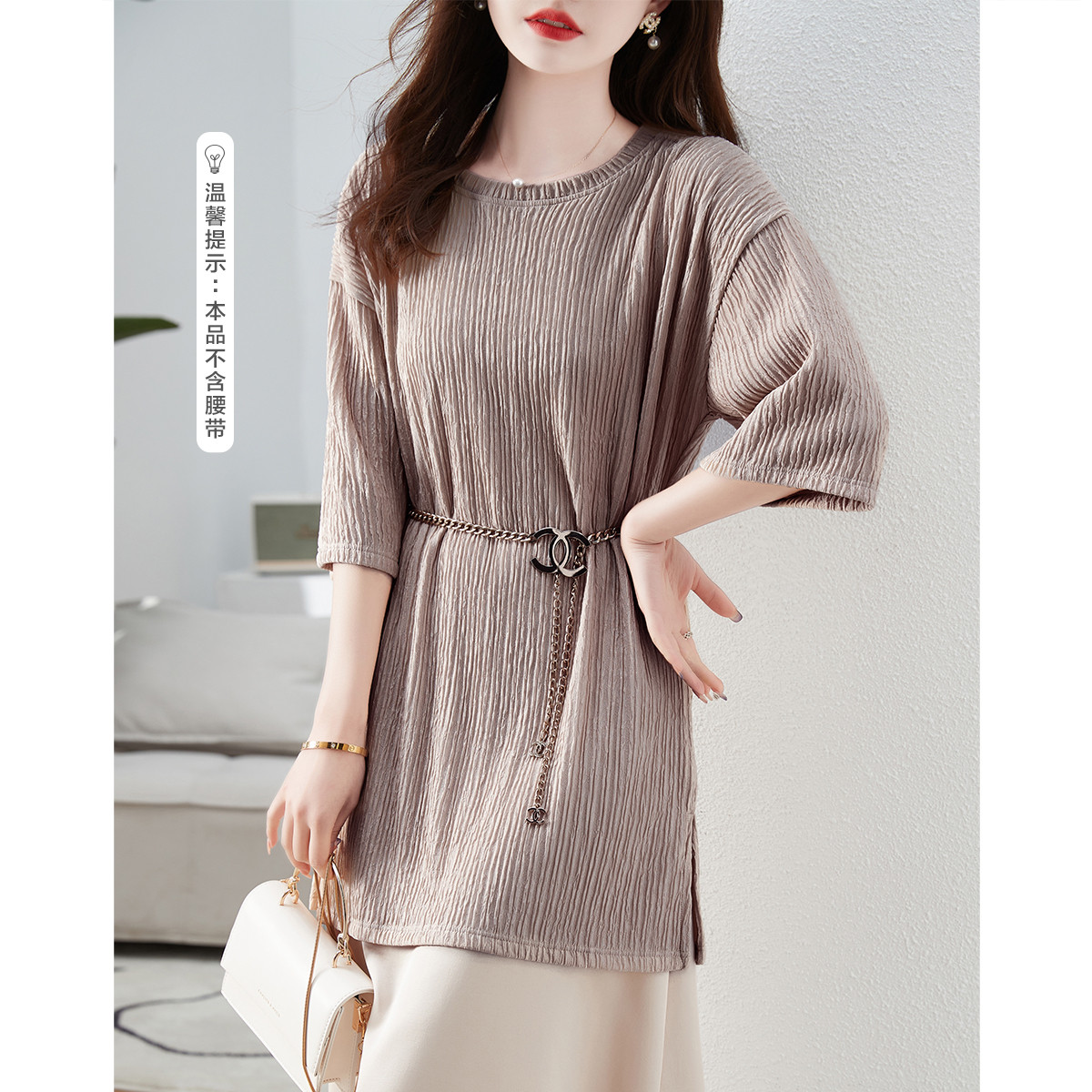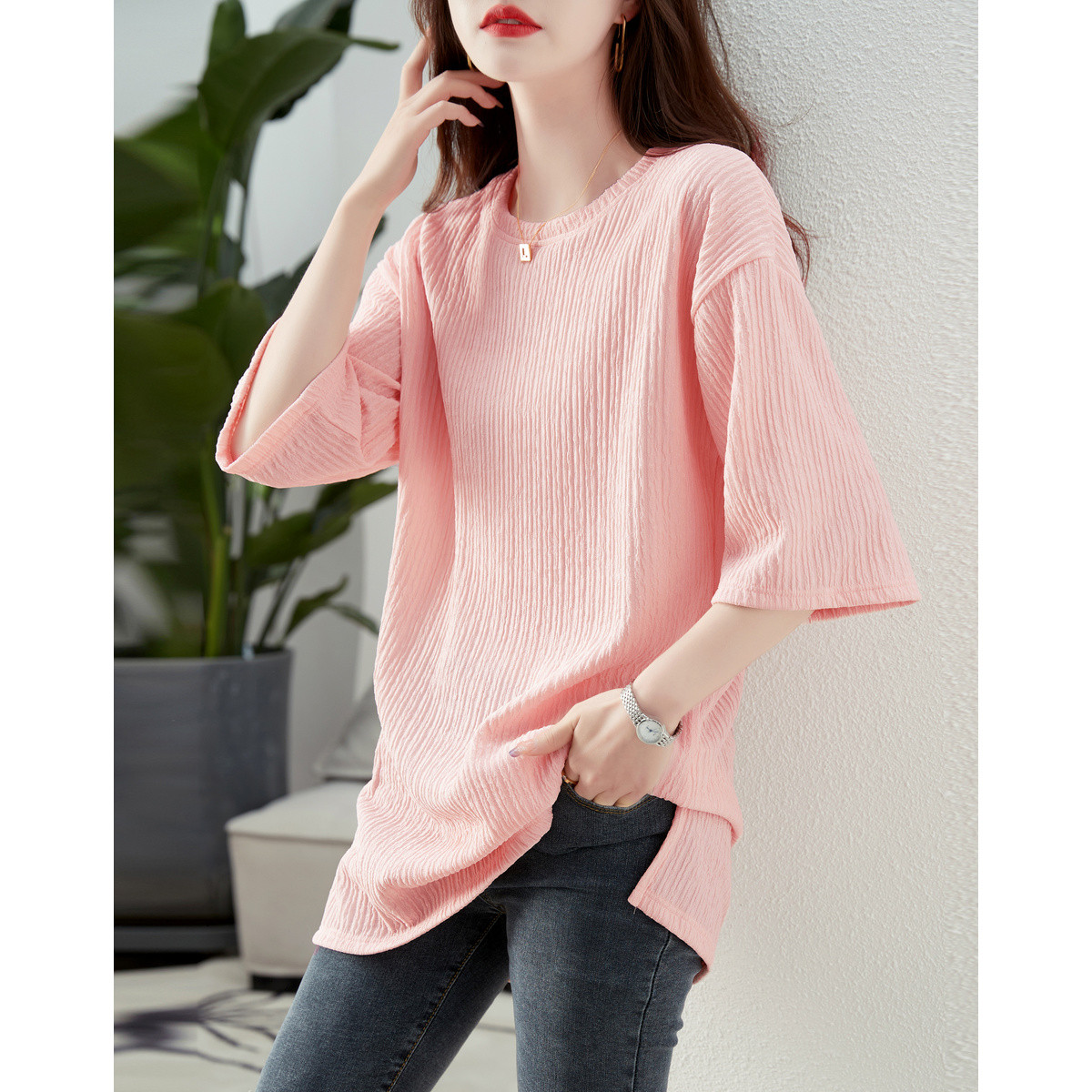 【泡芙褶皱上衣】夏季圆领短袖宽松打底衫女式上衣中长款 509825