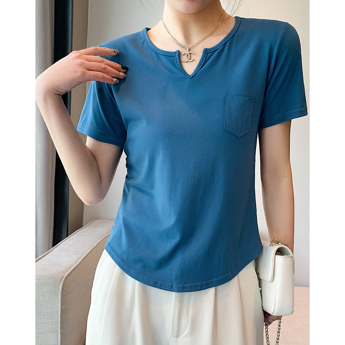 【气质棉质小V领女式t恤】夏修身个性短袖t恤女 408321