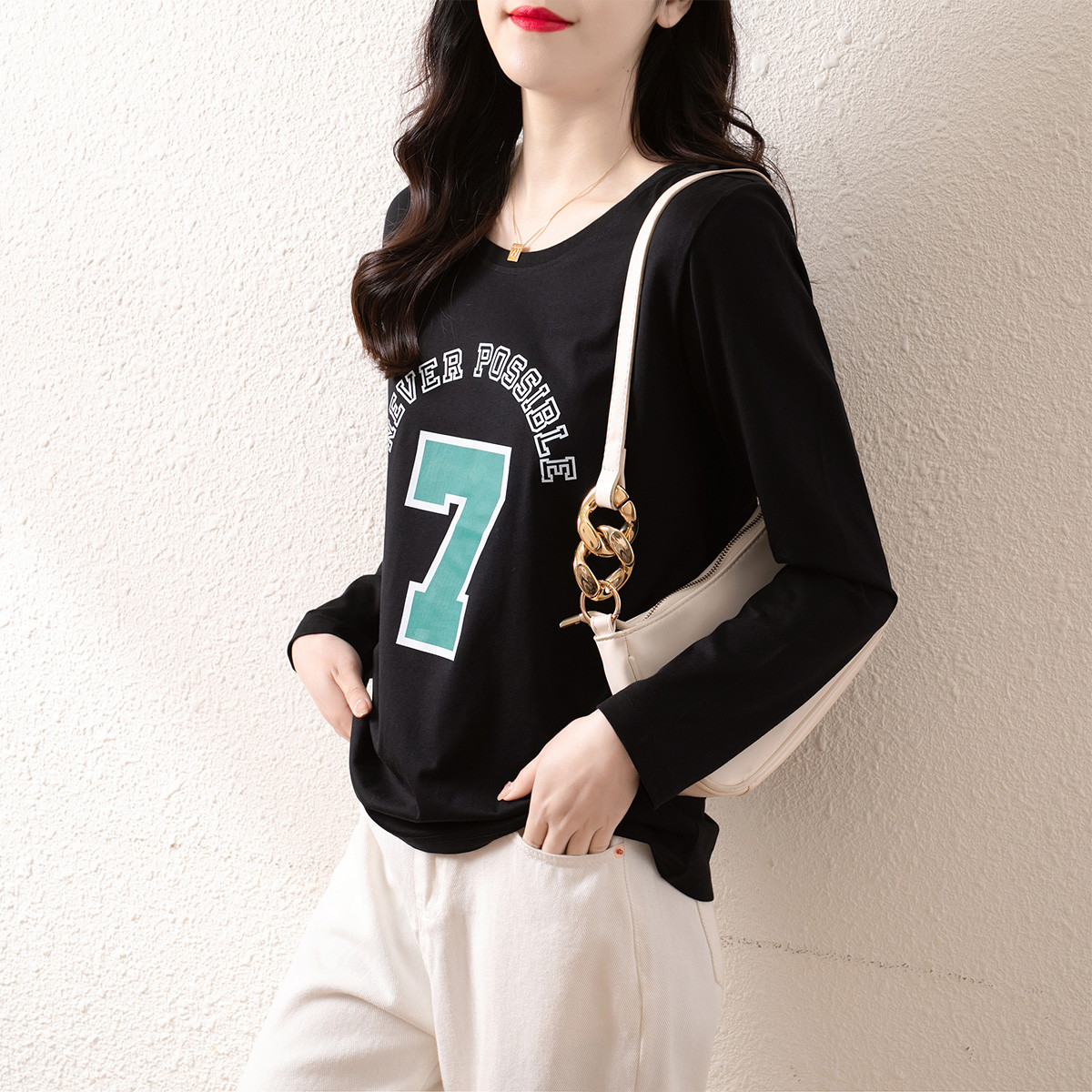 2025春秋潮款圆领女式T恤纯棉舒适胸前个性印花体恤上衣潮 009025