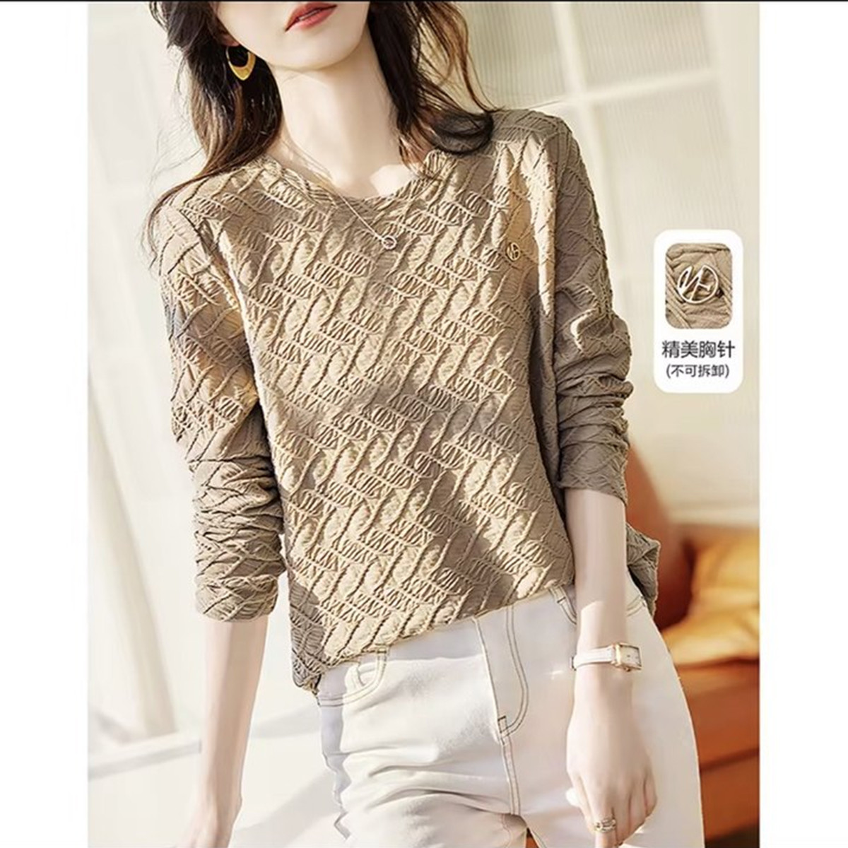 【重工浮雕肌理感】春秋轻盈舒爽裸肤体验针织显瘦长袖女式t恤 310337