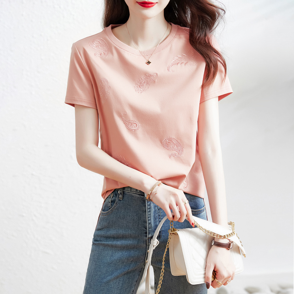 【丝光棉刺绣】绣花t恤女宽松女式t恤 000513