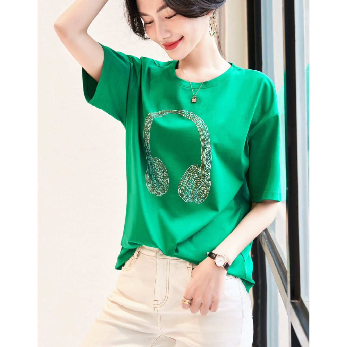 【钉珠工艺】春秋通勤圆领字母人像含棉短袖t恤上衣女 697217