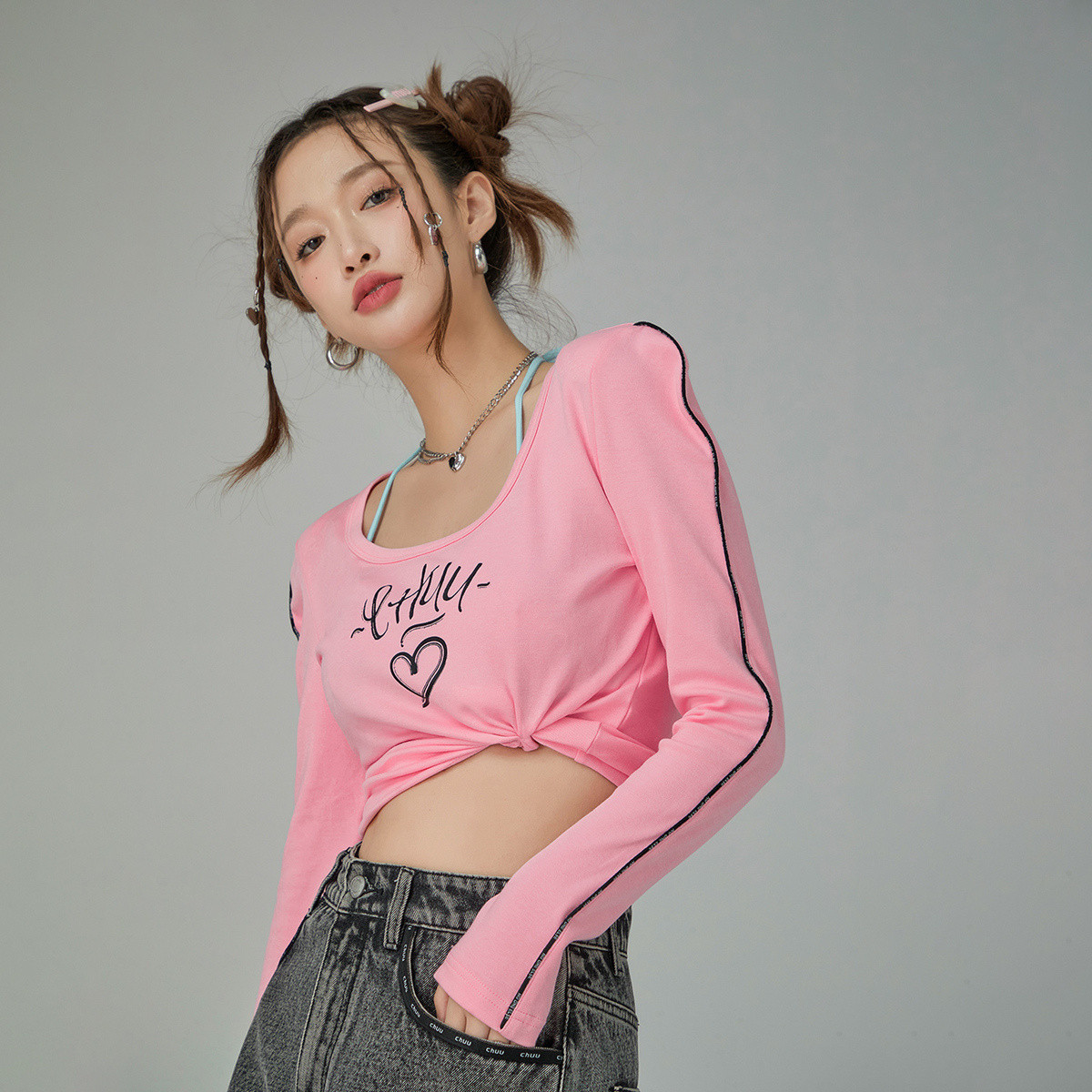 甜辣个性长袖爱心T恤女春秋洋气减龄百搭上衣 624915