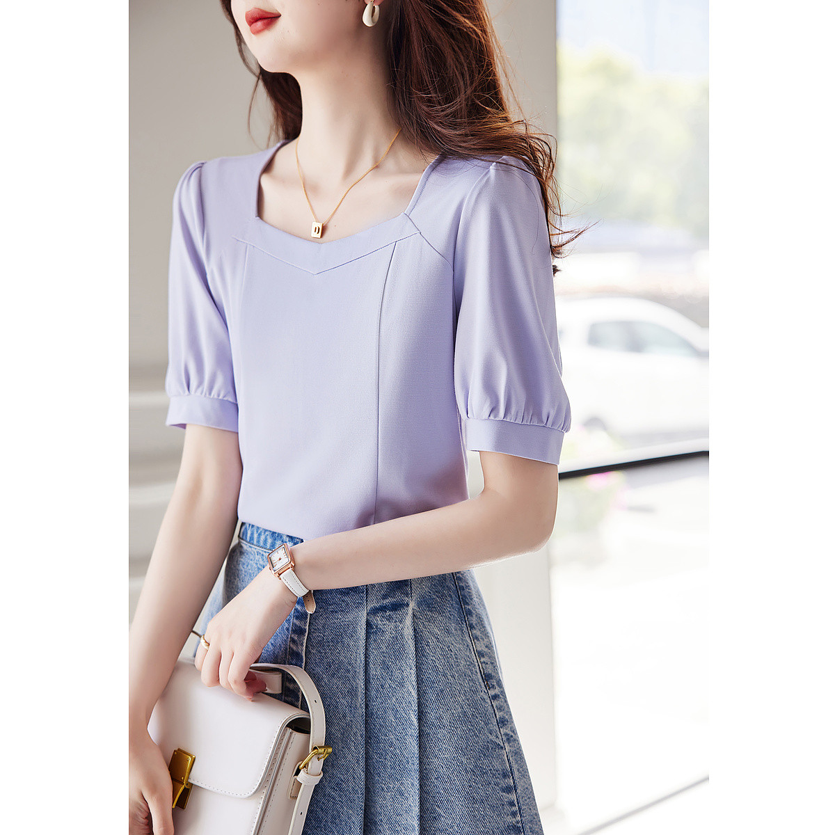 【一字领针织休闲风】夏季修身短袖t恤女弹力女式t恤 493441