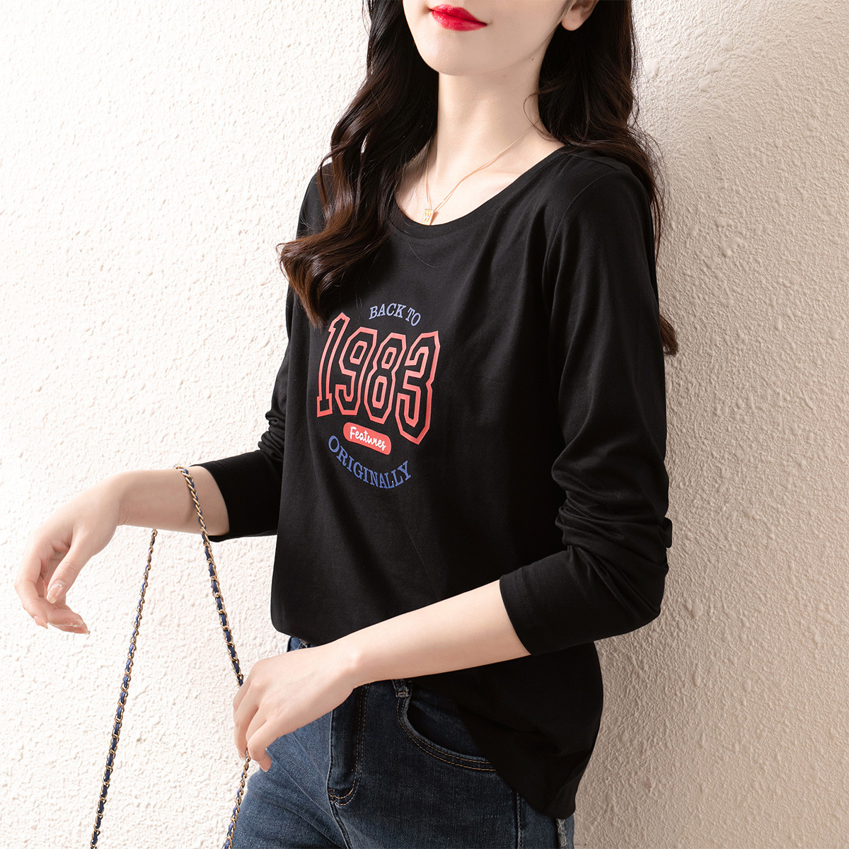 时尚潮流纯棉长袖T恤女2025春秋圆领上衣休闲舒适打底衫女 931201