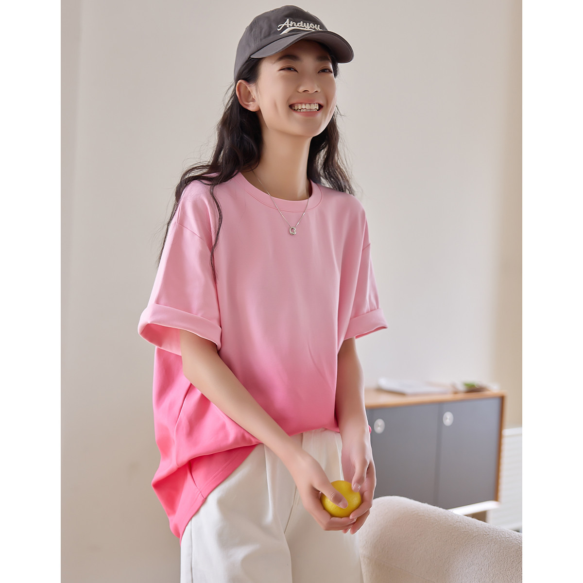 【多巴胺渐变T恤】夏款休闲风渐变大宽松圆领T恤女 998530