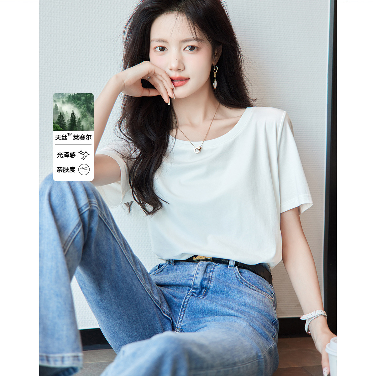 【中性风女式t恤】夏季莫代尔圆领微弹短袖t恤女 542209