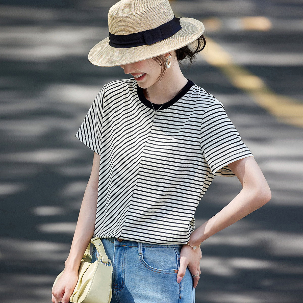 【流动条纹美学】气质显瘦针织条纹衫女夏季2025时髦圆领短袖 864991