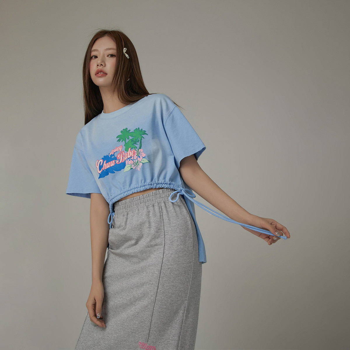 CHUU印花抽绳T恤女春夏设计感辣妹减龄宽松上衣 484179