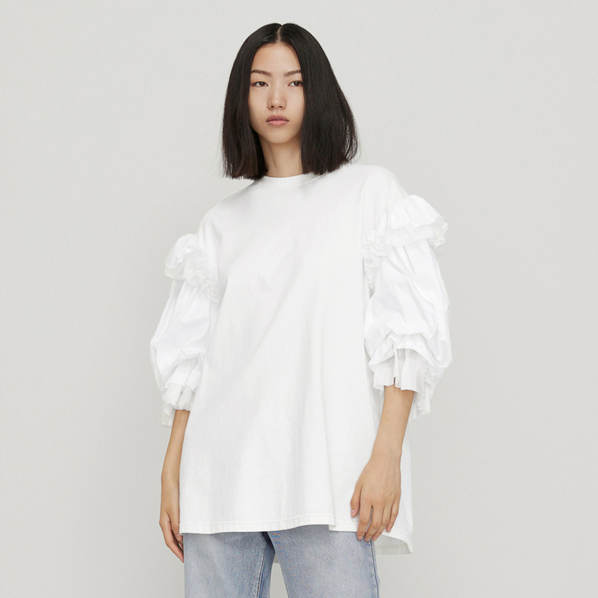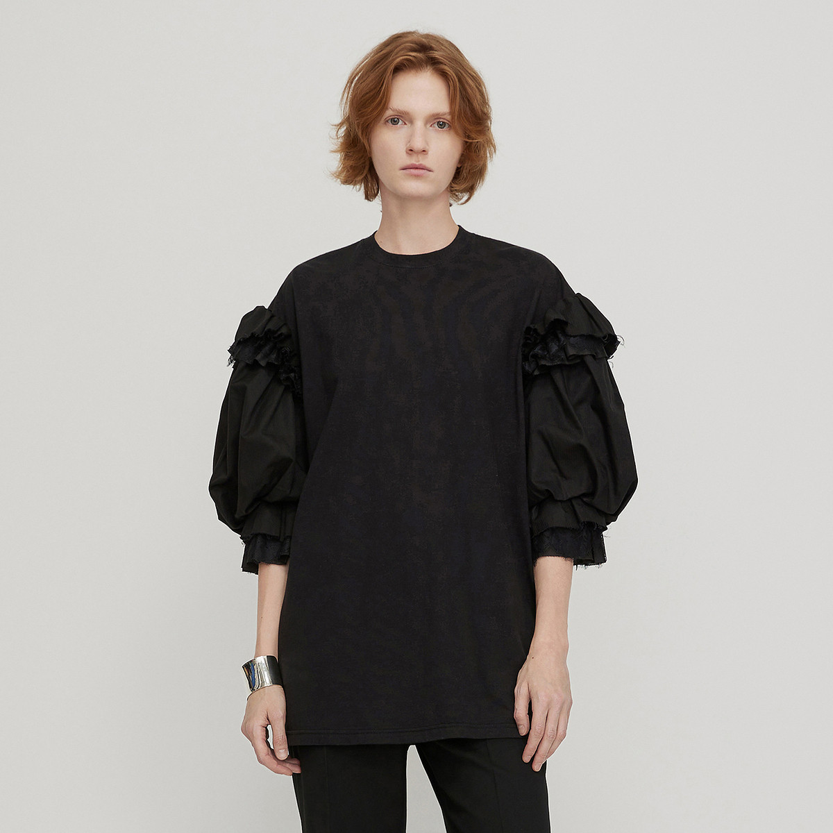【舒适简约风】冬款立体分割线打底圆领正肩T恤女 991618
