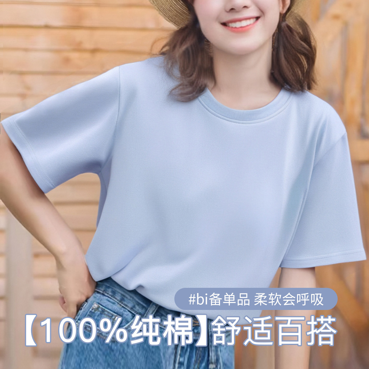 【100%纯棉】短袖打底T恤女高级感春夏薄款全棉内搭t恤女 040715