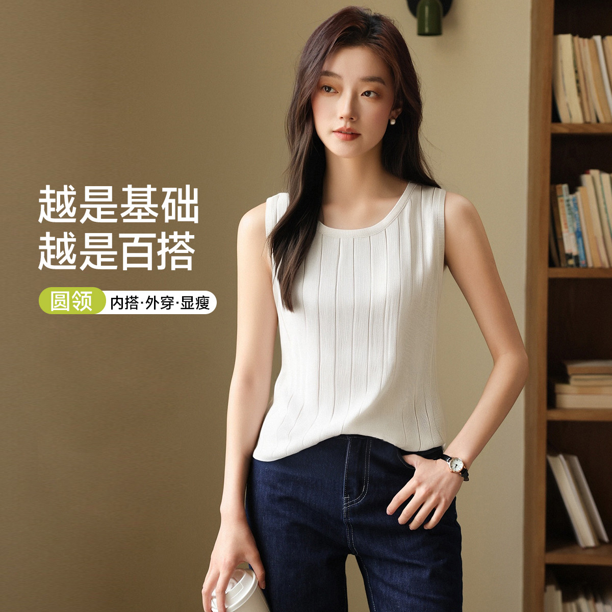 【美背显瘦】修身圆领高级感百搭女内搭基础可外穿吊带女士打底衫 722123