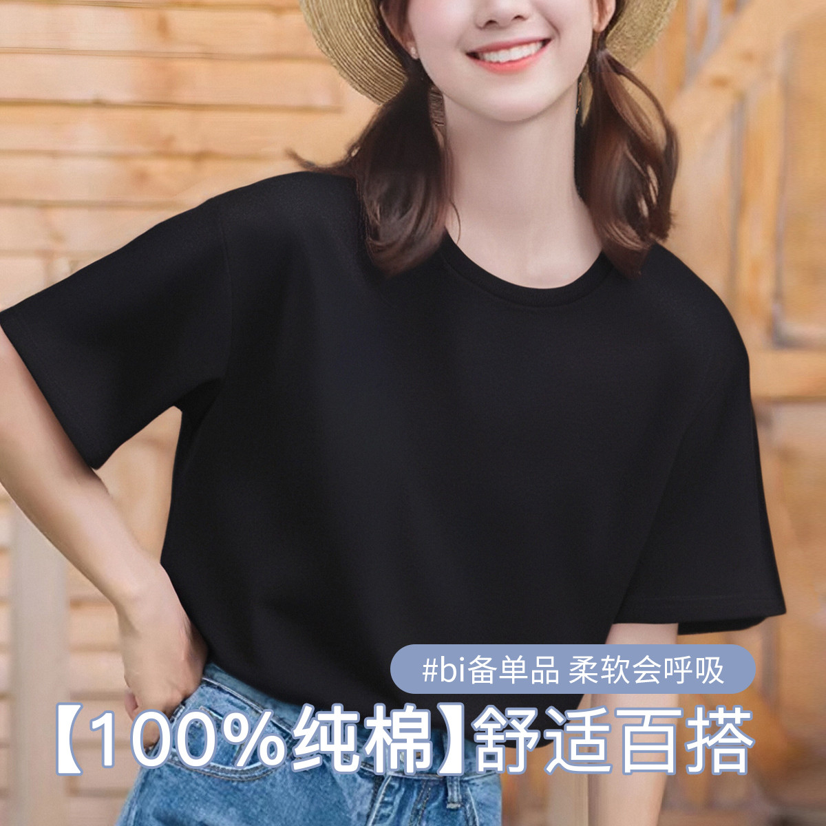 【100%纯棉】短袖打底T恤女高级感春夏薄款全棉内搭t恤女 202059