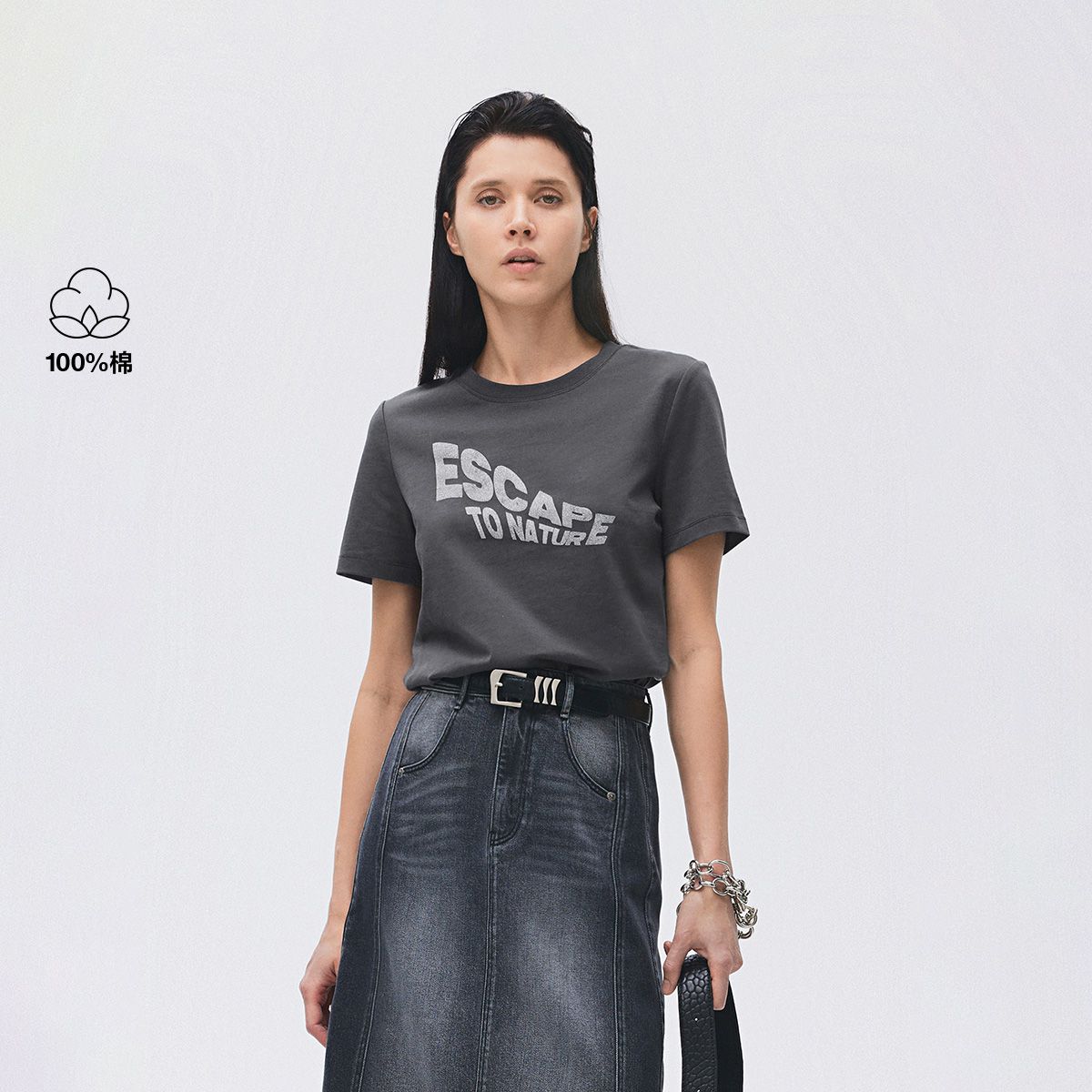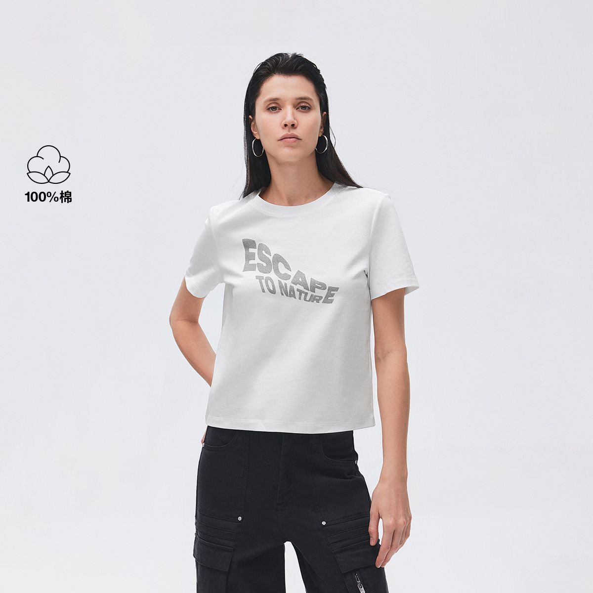 【圆领正肩】2025夏季纯棉基础款胶印字母合体T恤女 976218