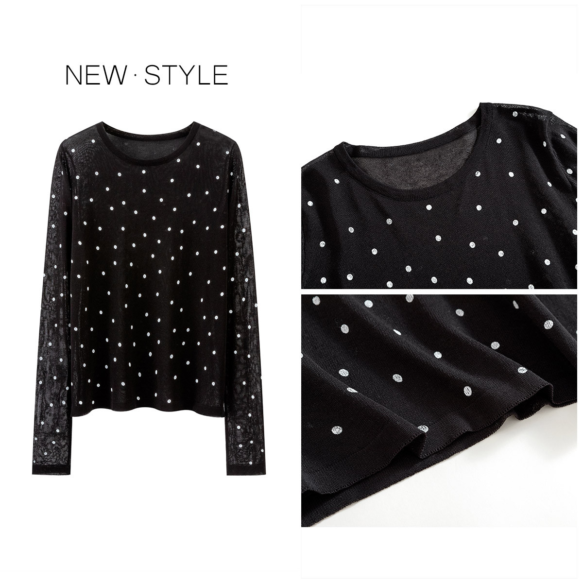 圆领长袖T恤软糯波点打底休闲显瘦百搭空调服罩衫上衣女 034563