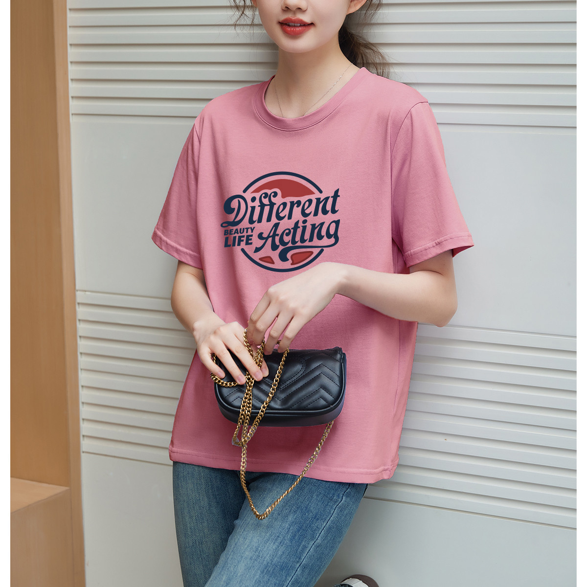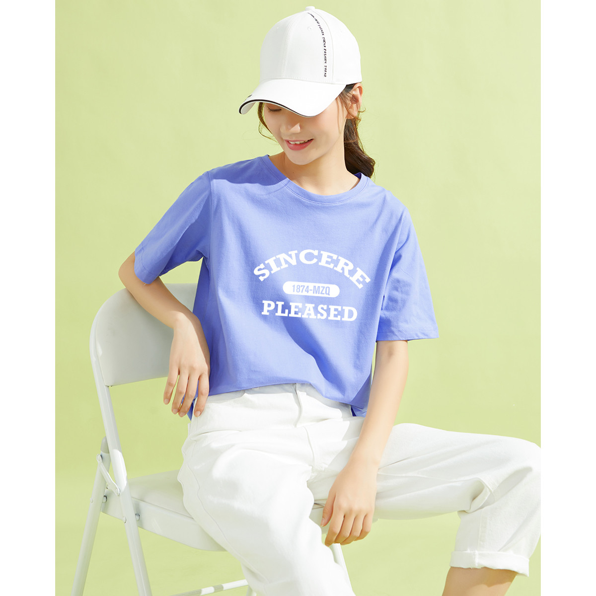 米子旗夏季圆领创意印花女式T恤简约宽松休闲短袖上衣百搭 750810