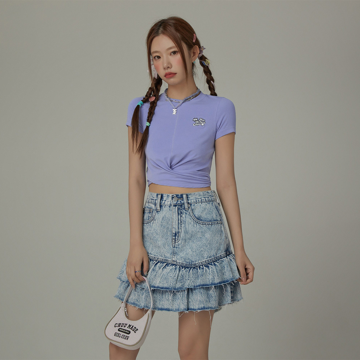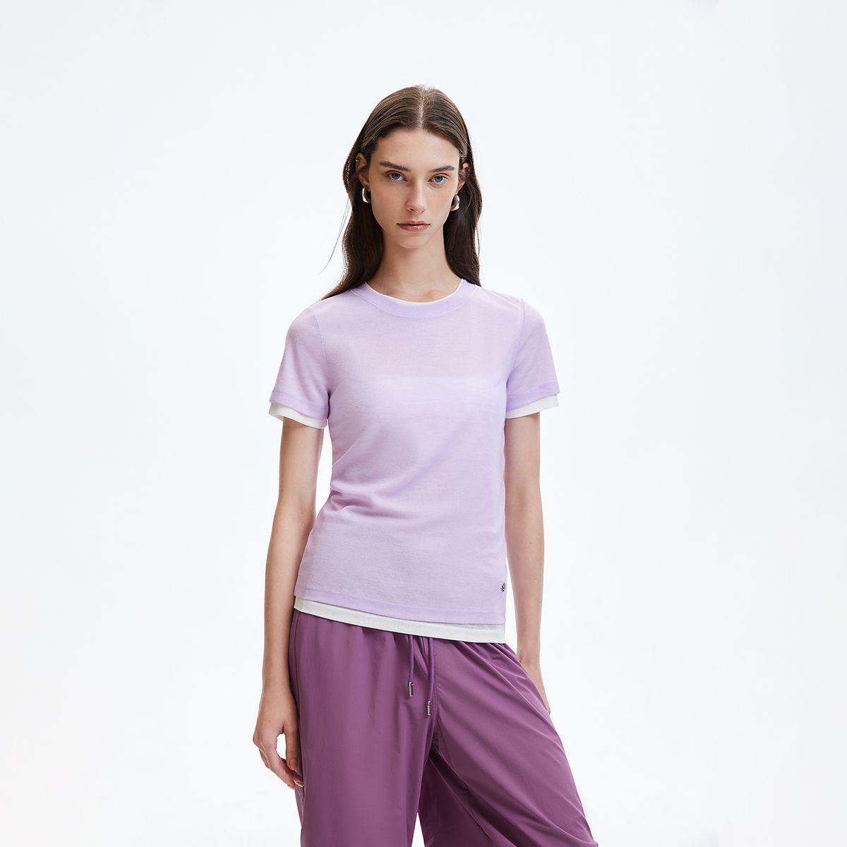 【修身短款】夏季时尚舒适叠穿撞色设计套装T恤女 947482