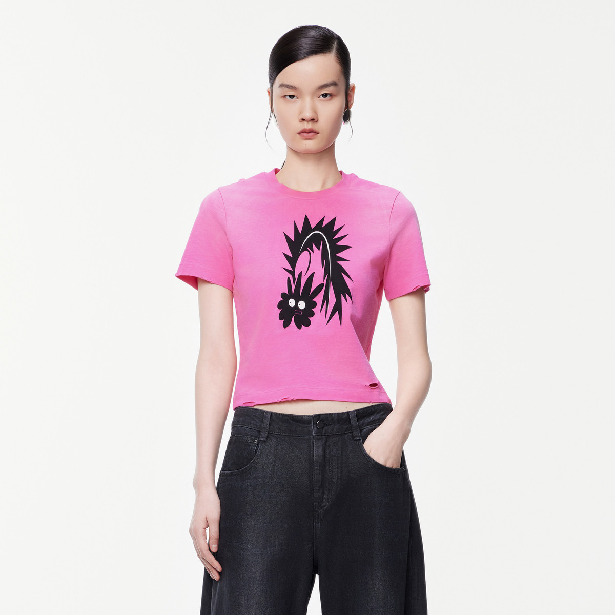 CHUU印花露背T恤女秋甜辣宽松型圆领短袖上衣 977555