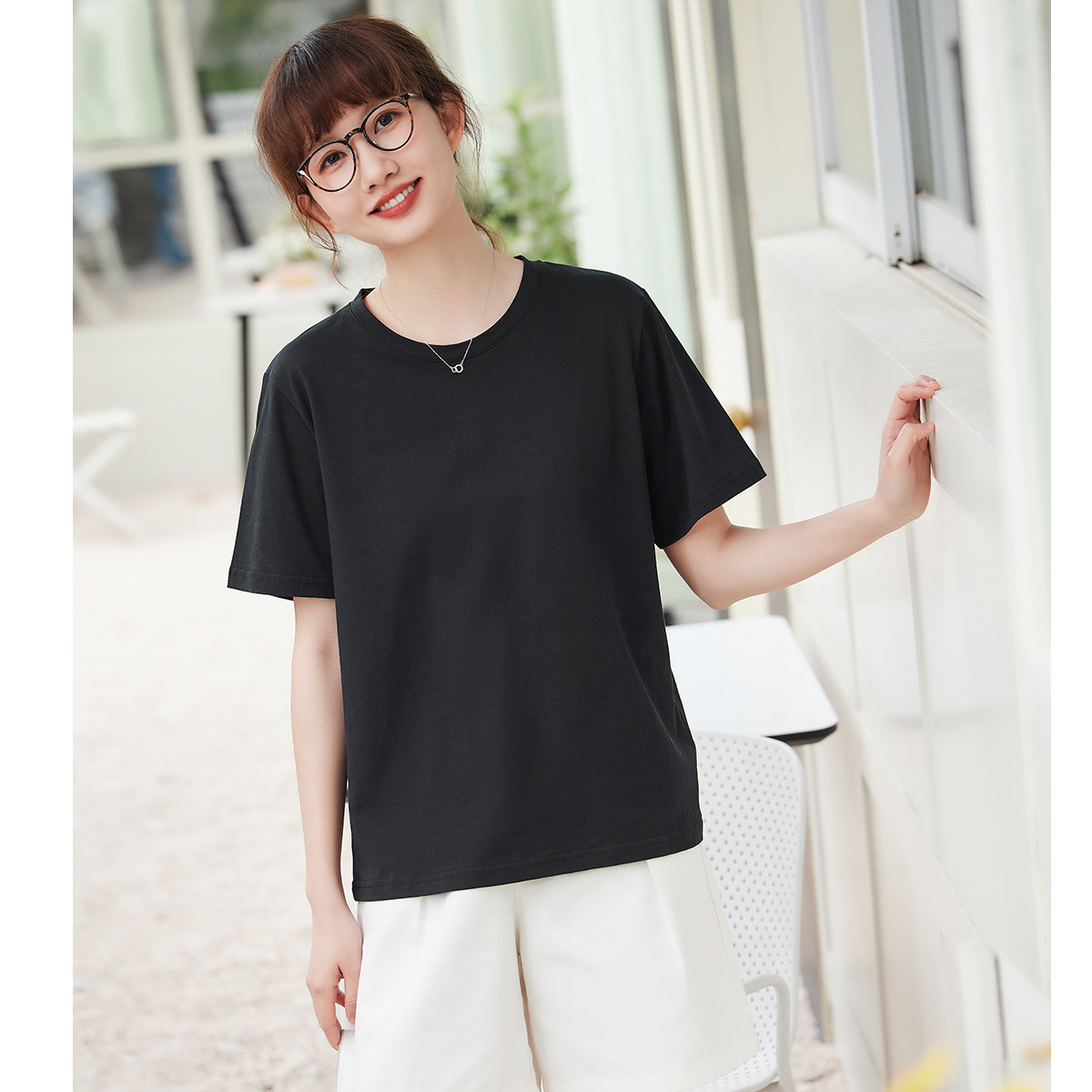 米子旗夏季圆领简约纯色女式T恤宽松休闲显瘦短袖上衣 168282