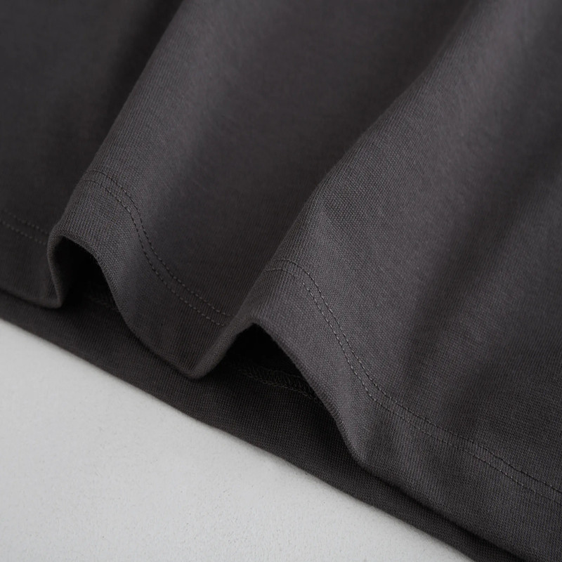 米子旗春秋款圆领女式T恤纯色宽松下摆开叉设计长袖上衣 544474
