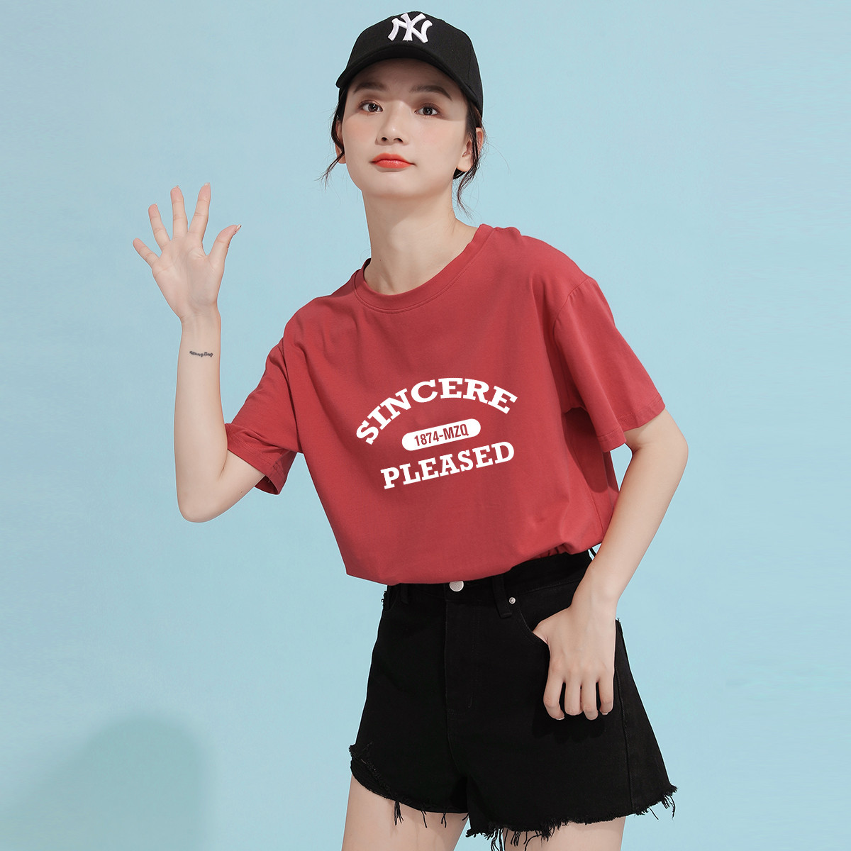米子旗夏季圆领创意印花女式T恤简约宽松休闲短袖上衣百搭 519834