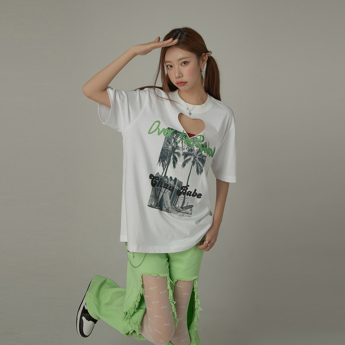 爱心镂空T恤女秋设计感个性印花宽松休闲百搭上衣 909843