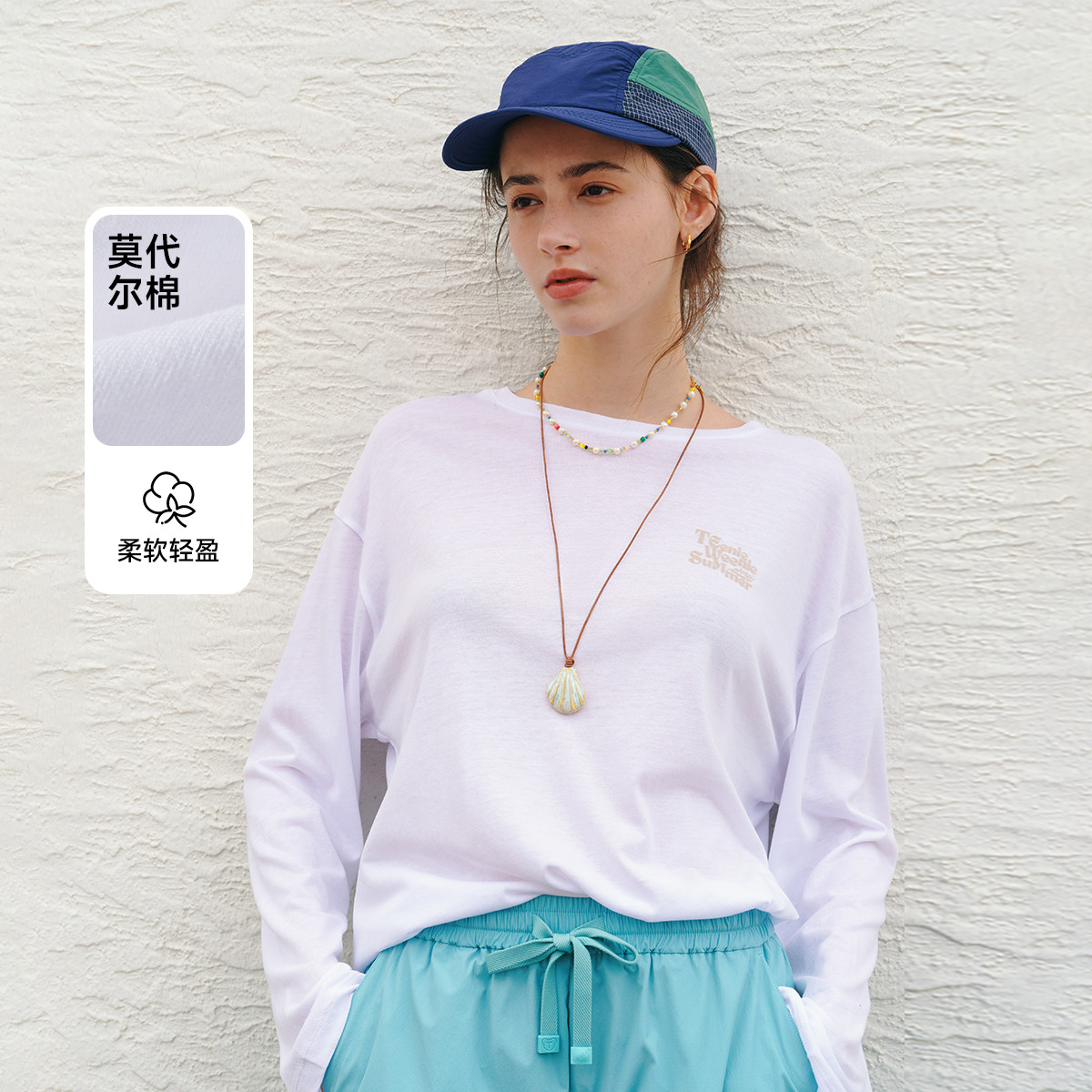小熊女式T恤春秋款轻薄微透长袖T恤莫代尔棉上衣 180353